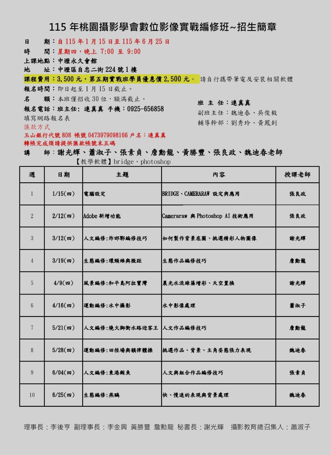 115 年桃園攝影學會數位影像實戰班 ~ 招生簡章